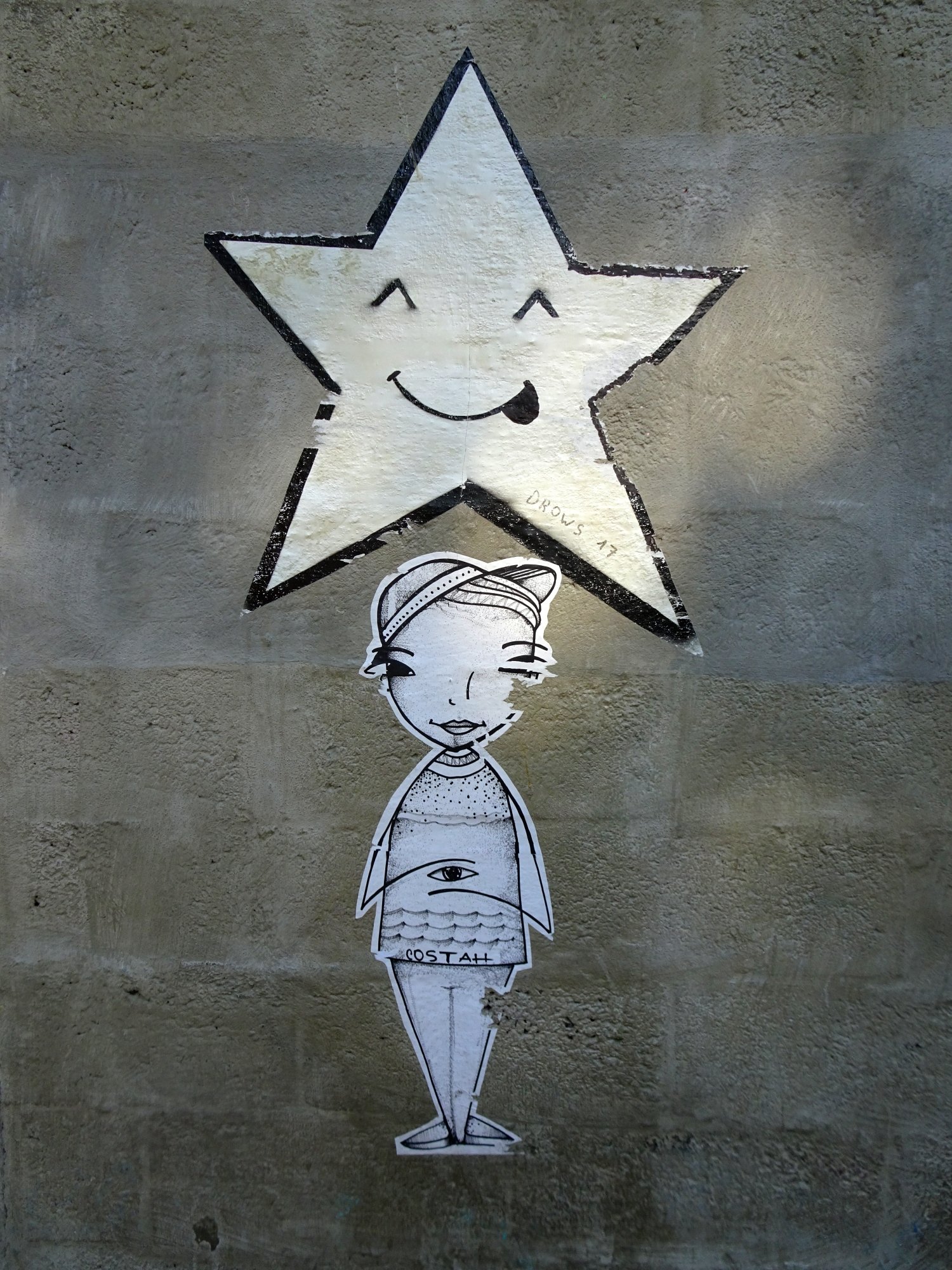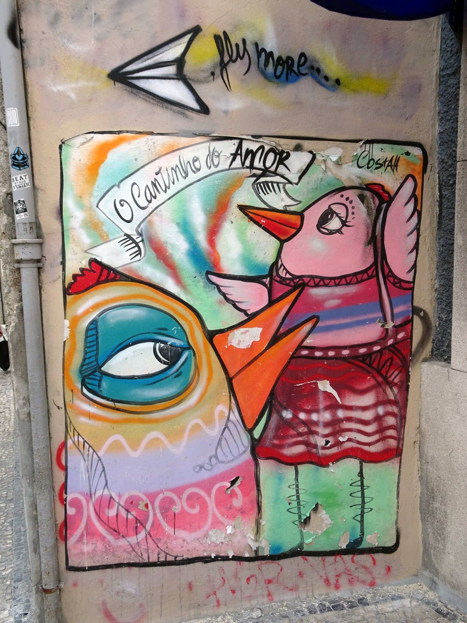 Je commence par Costah qui représente souvent des chats, des gros oiseaux et des enfants. Il est très présent à Porto, mais pas que car j’avais aussi croisé ses œuvres à Toulouse.