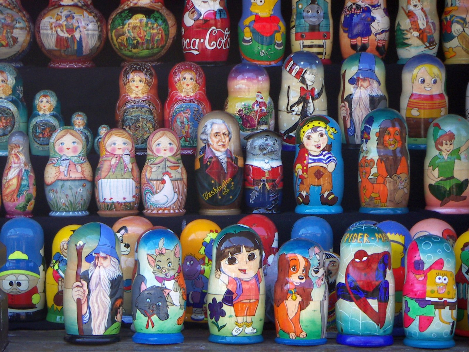 hahaha il y a des bonnes photos de trucs bien kitsch… comme la vache, le téléphone ou les poupées russes avec des personnages de dessins animés!