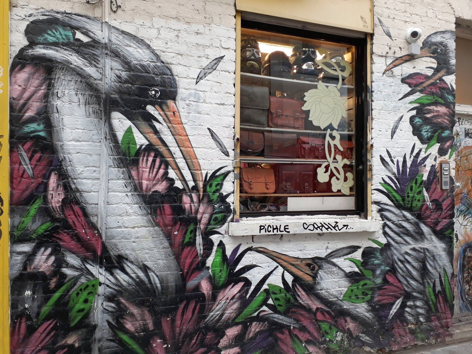 Ensuite, on en a vu des tonnes : des collages, des graffitis à gogo… le tout dans un quartier fréquenté par la plus grande concentration de hipsters que j’ai jamais vue ! Bien sûr, les magasins du coin les attirent. Il n’y a que des dizaines de magasins et de marchés (extérieurs ou dans différentes halles) qui vendent des vêtements vintage, des vinyles, de la nourriture végane et des vieux appareils photos. Le pantalon trop court, le long impair, le bonnet rond et les Dr. Martens sont de rigueur. C’est marrant de voir que tous ces hipsters, qui veulent se démarquer du reste de la société, sont en fait tous habillés pareil…